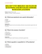2026-2027 UVIC BIOLOGY 186 EXAM 100 QUESTIONS AND DETAILED...