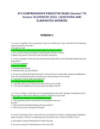 ATI COMPREHENSIVE PREDICTOR EXAM (Version1 TO Version 10,UPDATED 2022) | QUESTIONS AND ELABORATED