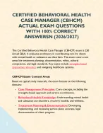 CERTIFIED BEHAVIORAL HEALTH CASE MANAGER (CBHCM) ACTUAL EXAM QUESTIONS WITH 100% CORRECT ANSWERSN