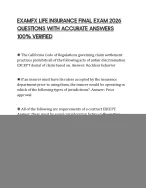 EXAMFX LIFE INSURANCE FINAL EXAM 2026 QUESTIONS WITH ACCUR... $10.00 Add to Cart