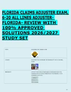 FLORIDA CLAIMS ADJUSTER EXAM, 6-20 ALL LINES ADJUSTER- FLORIDA- REVIEW WITH 100% APPROVED