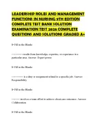 LEADERSHIP ROLES AND MANAGEMENT FUNCTIONS IN NURSING 9TH EDITION COMPLETE TEST BANK SOLUTION EXAMIN