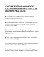 LEADERSHIP ROLES AND MANAGEMENT FUNCTIONS IN NURSING FINAL STUDY GUIDE 2026 TESTED ITEMS SOLVED