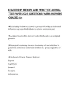LEADERSHIP THEORY AND PRACTICE ACTUAL TEST PAPER 2026 QUESTIONS WITH ANSWERS GRADED A+